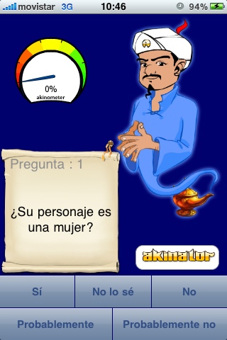En este caso nosotros pensamos el personaje, y el genio Akinator nos hará las preguntas. Este programa sería una curiosidad entretenida más, si no fuera porque es capaz de acertar las cosas más inverosímiles.