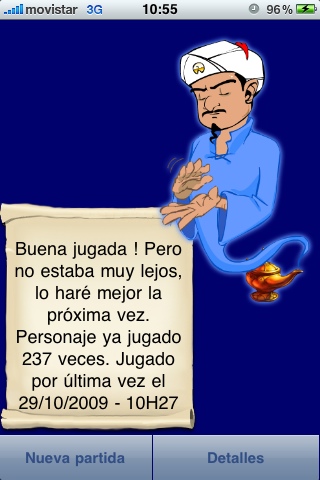 Además, si Akinator no acierta, nos preguntará quién era, y de esta manera añadirá nuestro personaje a su base de datos.