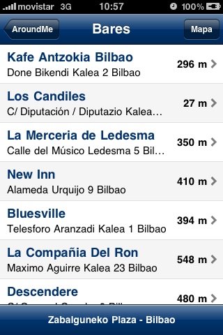 El problema de la aplicación son los resultados, a veces impresiona bastante, y otras veces no es capaz de mostrarte un bar que tienes delante de las narices, ya que no hace magia, consulta una base de datos en la que no está absolutamente todo.