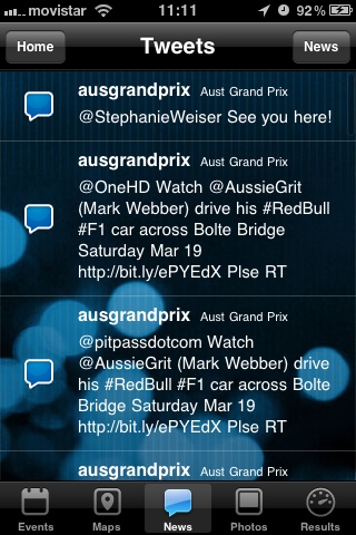 Suponemos que no vas a ir a Australia, pero esta aplicación sería perfecta si fuera el caso. No solo te da las últimas noticias sobre la carrera, o los últimos mensajes en Twitter.