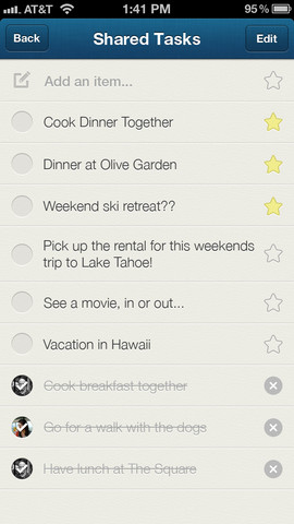 – Listas compartidas, en las que cualquiera de los dos puede añadir y borrar elementos.