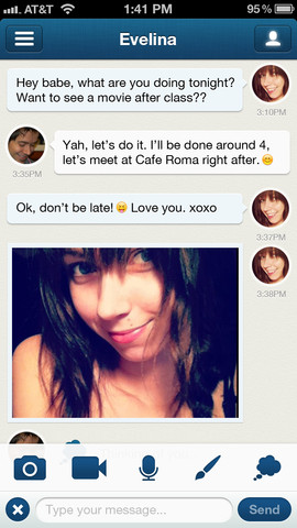 – Puedes enviar fotos, aplicarles filtros, e incluso enviar fotos que se autodestruirán al verlas, o al de unos segundos.