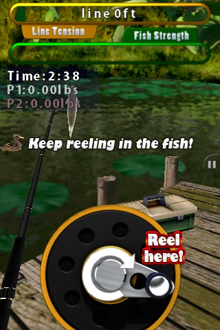 En cuanto a los modos de juego, podemos o bien pescar sin más, o pescar contra alguien. Puede ser un amigo que esté con nosotros, pasándonos el iPhone para tirar una vez cada uno, o bien con otro iPhone en red local. También se puede jugar contra el ordenador.