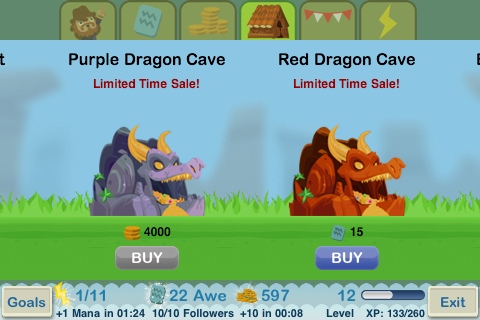 Para comprar o hacer cosas, dependes de tres clases de elementos: el maná, el awe, y el dinero. Es un poco lioso al principio, porque igual bastaba con una sola cosa, pero suponemos que estará todo pensado para que te gastes tu dinero real en comprar más puntos.