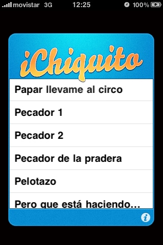 iChiquito es una aplicación que muestra un botón en pantalla para que al pulsarlo podamos oir una frase aleatoria de Chiquito de la Calzada.