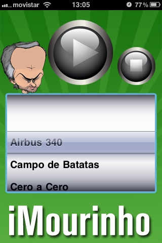 iMourinho es una aplicación que sirve para escuchar unas cuantas frases pronunciadas por Jose Mourinho, entrenador del Real Madrid.