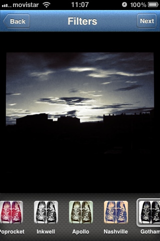 Al subir las fotos, incluye un pequeño editor con efectos, y geoposicionamiento. Es francamente preciso, ya que te indica muchos lugares cercanos a tu posición, como bares, comercios, estaciones de tren, o parques.