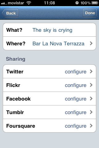 Instagram también sirve para publicar tus fotos en Facebook, Twitter, Flickr, Tumblr, y Foursquare.