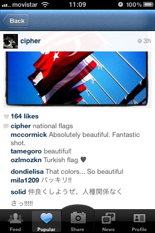 No obstante, hay una pestaña en la que salen las fotos más populares y puedes ver fotos asombrosas en los perfiles de la gente. Puedes darle al botón «me gusta», al estilo de Facebook, o dejar un comentario.