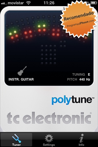 El funcionamiento no podría ser más simple. Lo tradicional es tocar cada cuerda por separado y que el afinador te diga si está afinada. Con este programa, tocas todas a la vez, al aire, y en la pantalla del iPhone ves cómo está afinada cada una.