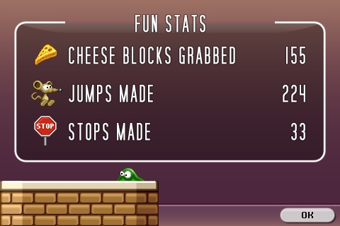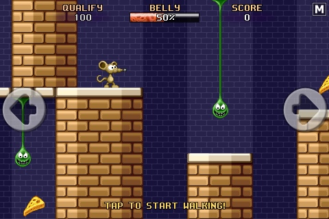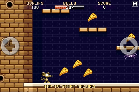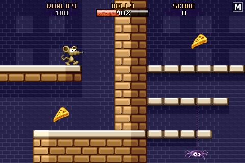 El objetivo es ayudar a una adorable ratita a conseguir trozos de queso evitando los peligros. El manejo no podría ser más sencillo, solo hay que saltar, ya que cuando la ratita se pone a andar, no se detiene hasta que encuentra una señal de stop, está muy bien pensado.