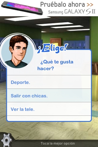 Es un juego entretenido, su único problema es la temática adolescente, que puede que no te guste, o que no seas un adolescente. A veces se hace un poco pesado porque hay que ir leyendo y tocando la pantalla, pero cada cierto tiempo tendremos que elegir una opción, o jugar a un pequeño juego para superar situaciones.
