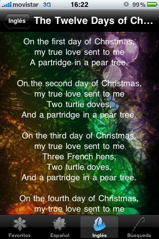 Villancicos es una aplicación que sirve para consultar las letras de prácticamente cualquier villancico conocido.